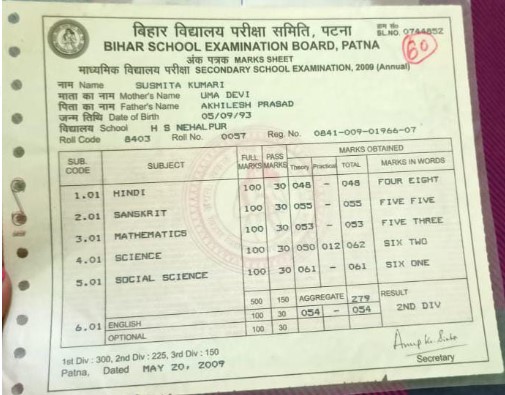 | Exam | Full Marks | Pass Marks | Marks Obtained |