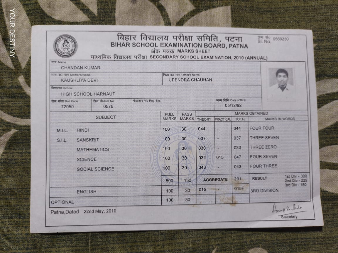 | Exam | Full Marks | Pass Marks | Marks Obtained |