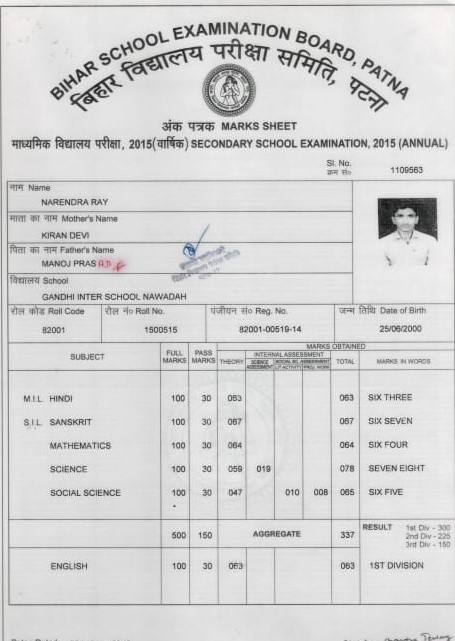 | Exam | Full Marks | Pass Marks | Marks Obtained |
