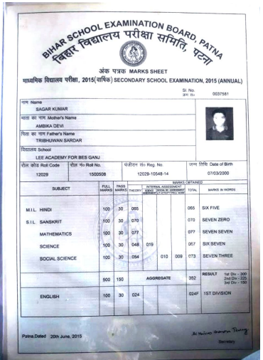 | Exam | Full Marks | Pass Marks | Marks Obtained |