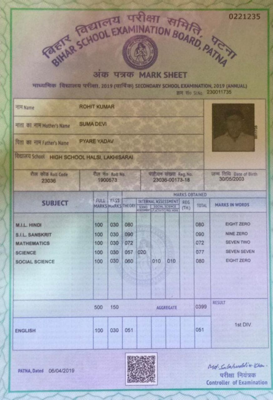 | Exam | Full Marks | Pass Marks | Marks Obtained |