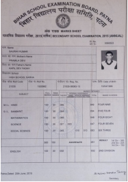 | Exam | Full Marks | Pass Marks | Marks Obtained |