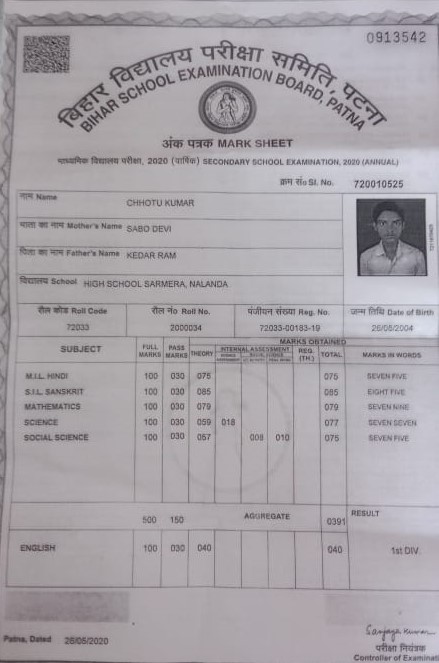 | Exam | Full Marks | Pass Marks | Marks Obtained |