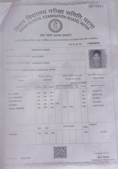 | Exam | Full Marks | Pass Marks | Marks Obtained |