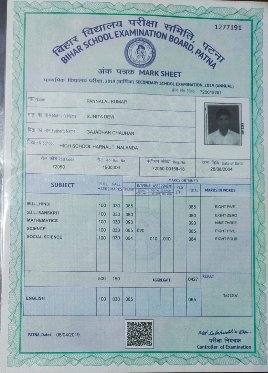 | Exam | Full Marks | Pass Marks | Marks Obtained |