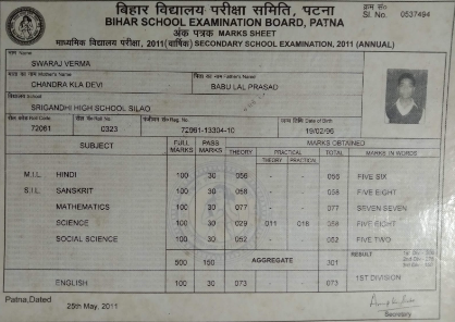 | Exam | Full Marks | Pass Marks | Marks Obtained |