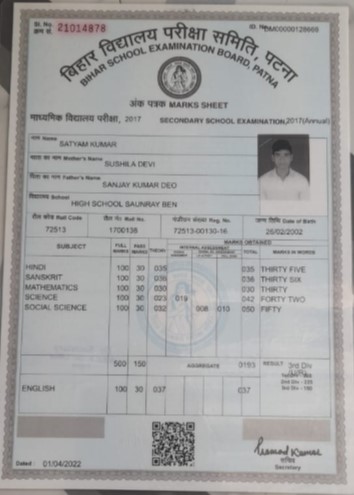 | Exam | Full Marks | Pass Marks | Marks Obtained |