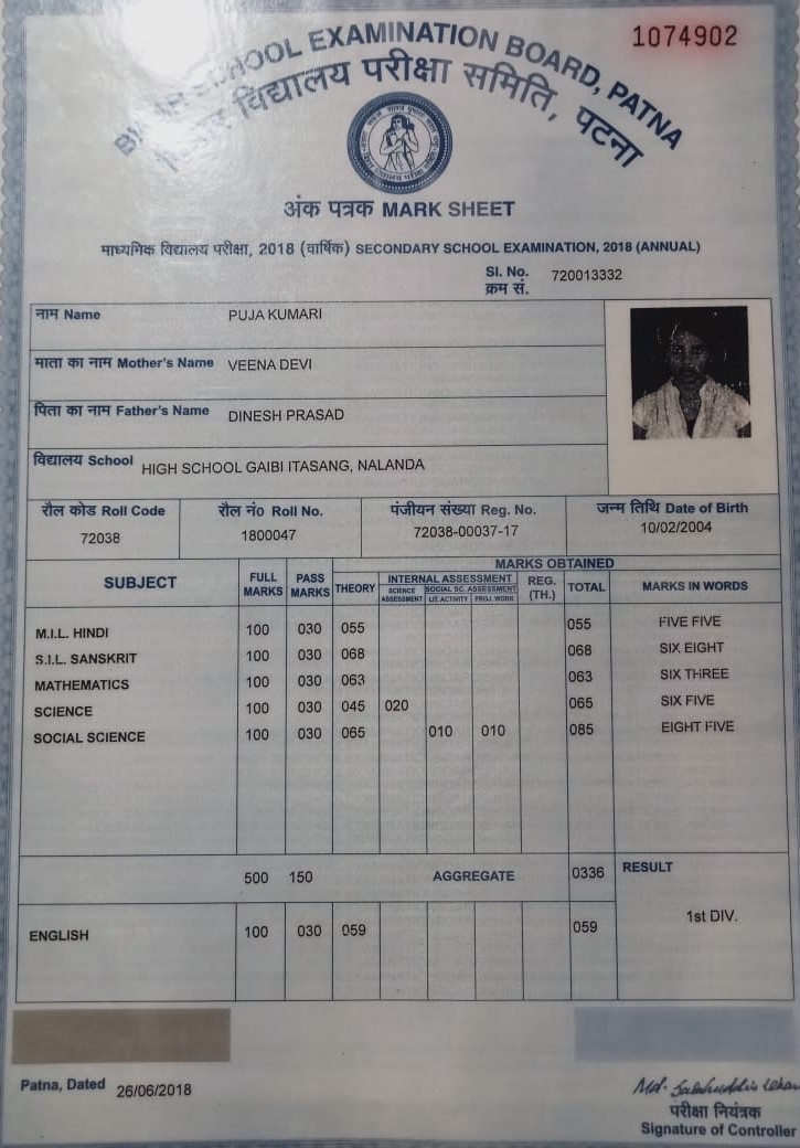 | Exam | Full Marks | Pass Marks | Marks Obtained |