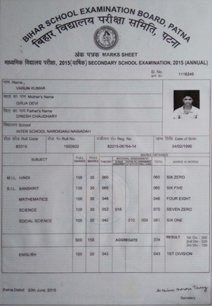 | Exam | Full Marks | Pass Marks | Marks Obtained |