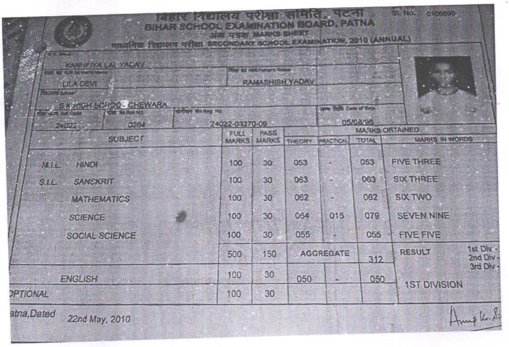 | Exam | Full Marks | Pass Marks | Marks Obtained |