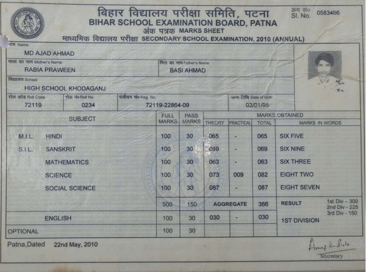 | Exam | Full Marks | Pass Marks | Marks Obtained |