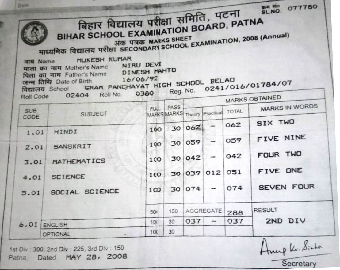 | Exam | Full Marks | Pass Marks | Marks Obtained |