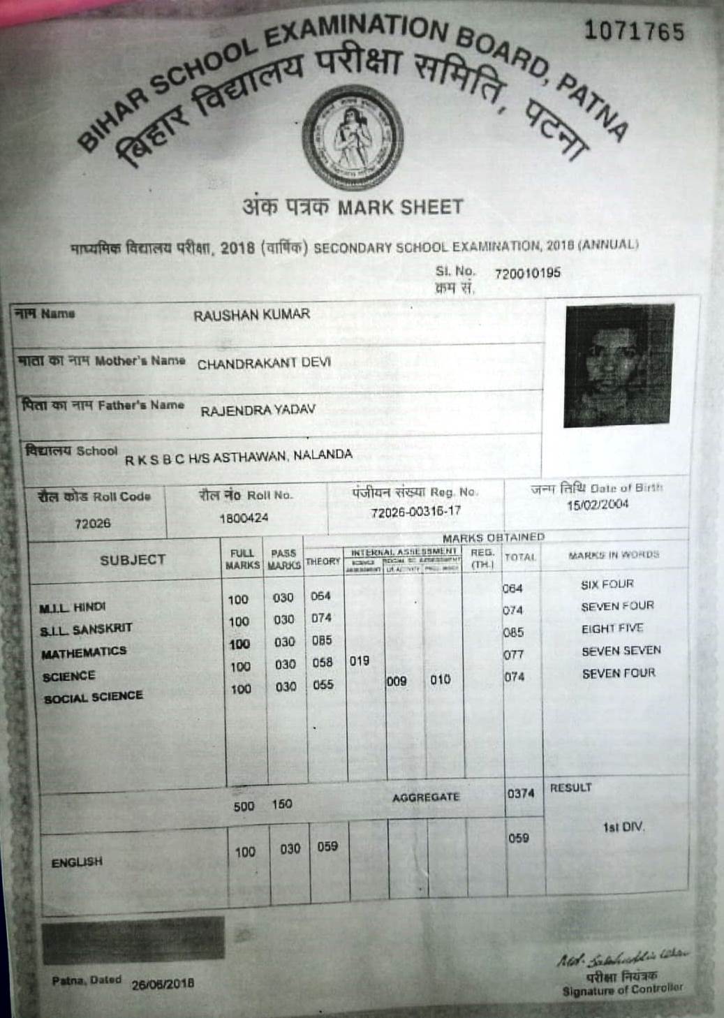 | : | Dekulighat, Khandakpar, BIHAR SHARIF-803101, Nalanda | |