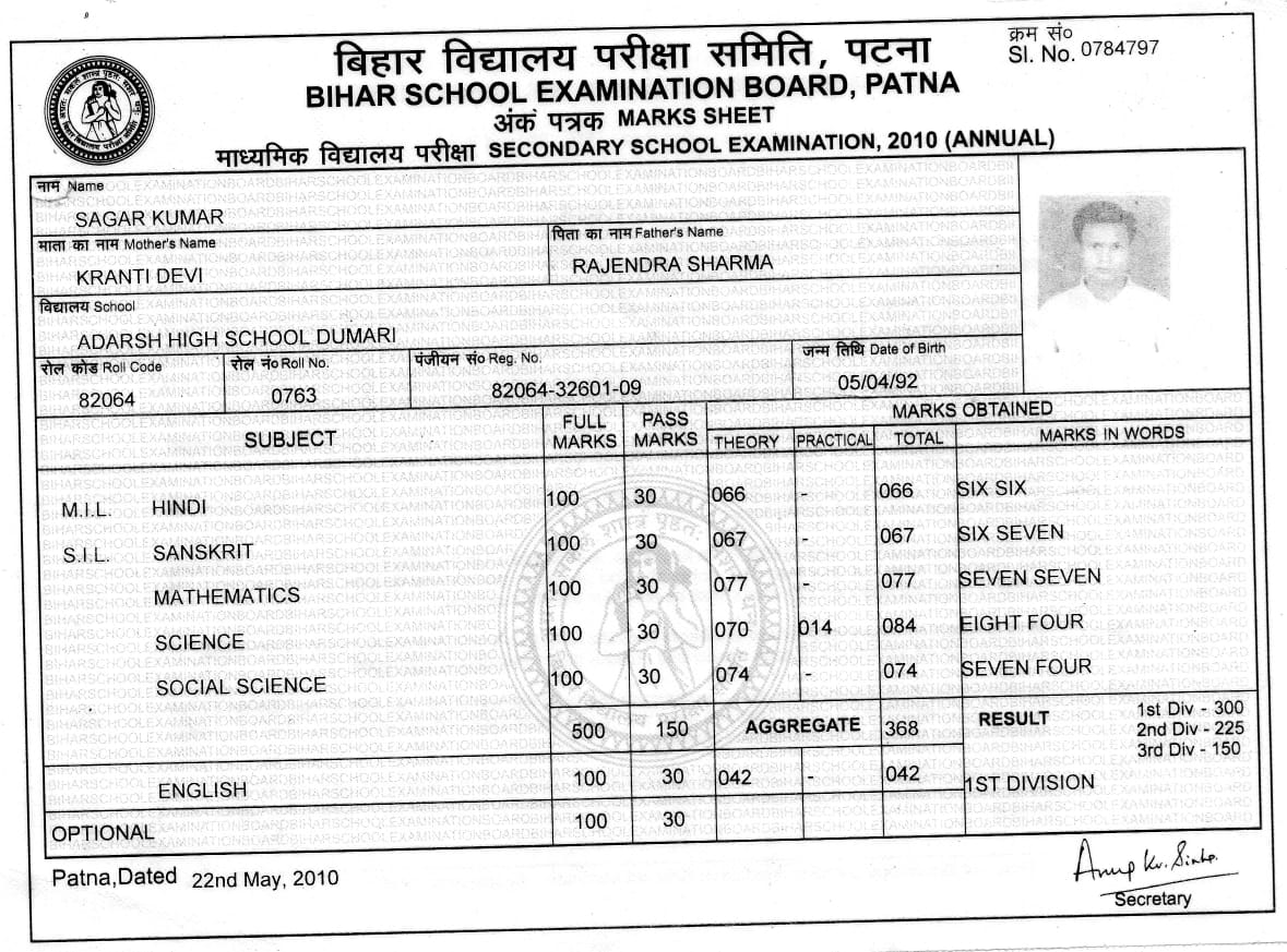| Exam | Full Marks | Pass Marks | Marks Obtained |