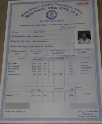 | Exam | Full Marks | Pass Marks | Marks Obtained |