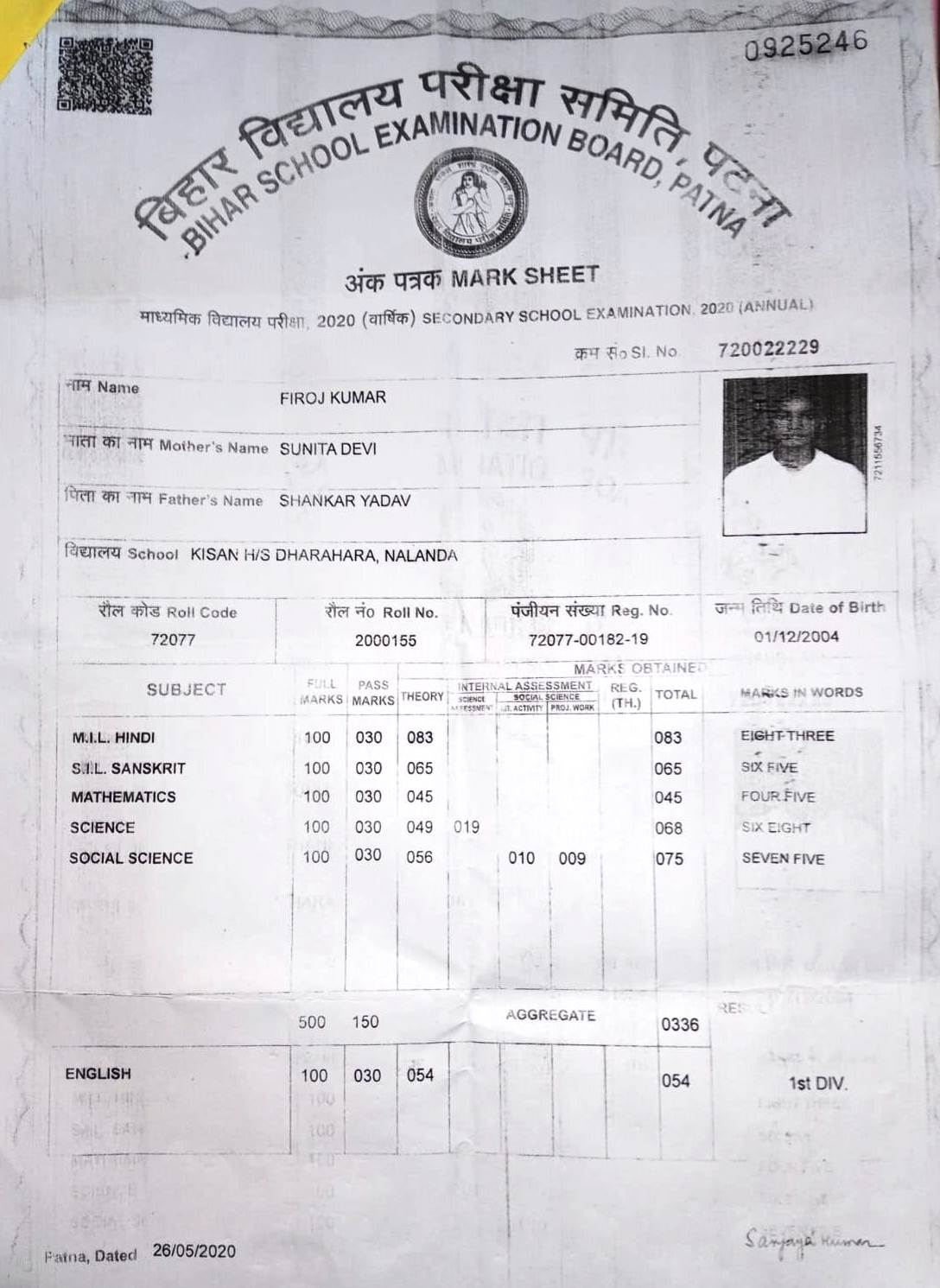 | Exam | Full Marks | Pass Marks | Marks Obtained |