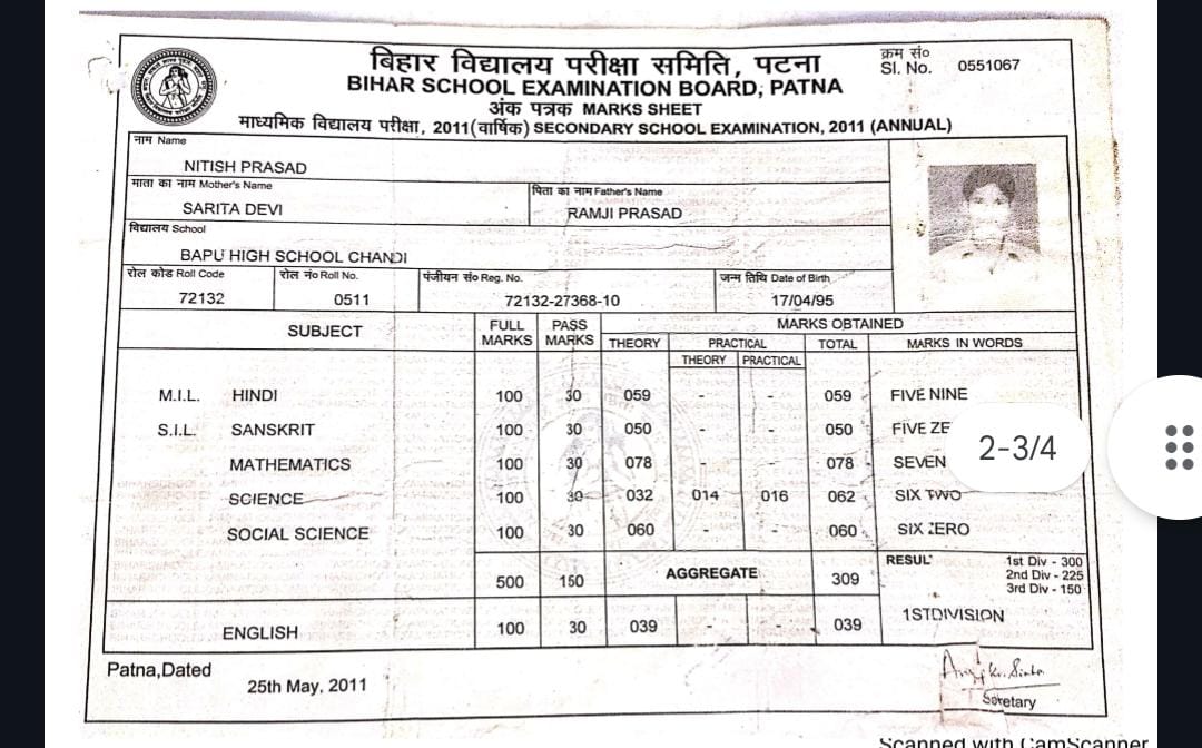 | Exam | Full Marks | Pass Marks | Marks Obtained |
