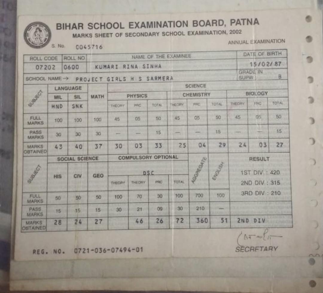 | Exam | Full Marks | Pass Marks | Marks Obtained |