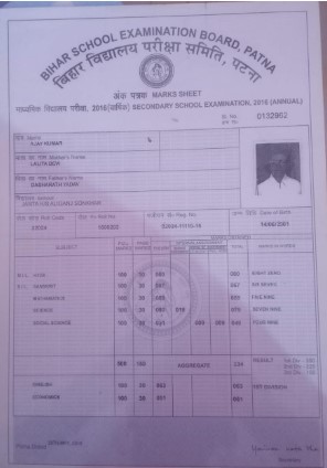 | Exam | Full Marks | Pass Marks | Marks Obtained |