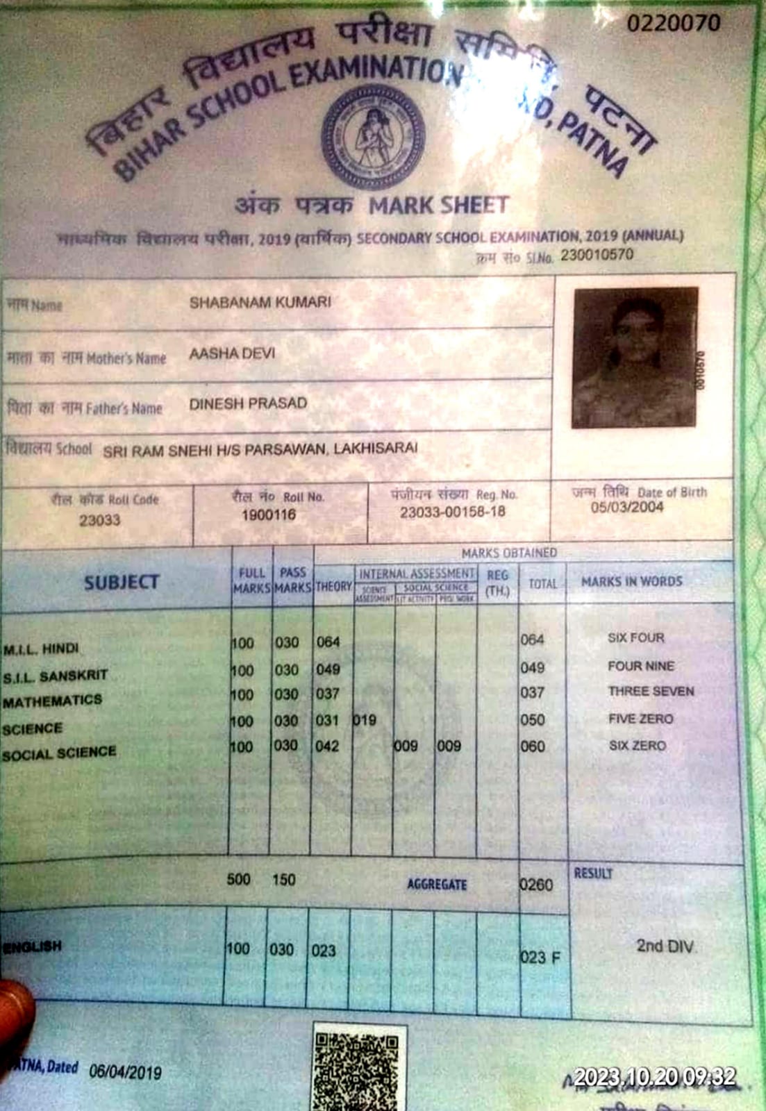 | Exam | Full Marks | Pass Marks | Marks Obtained |
