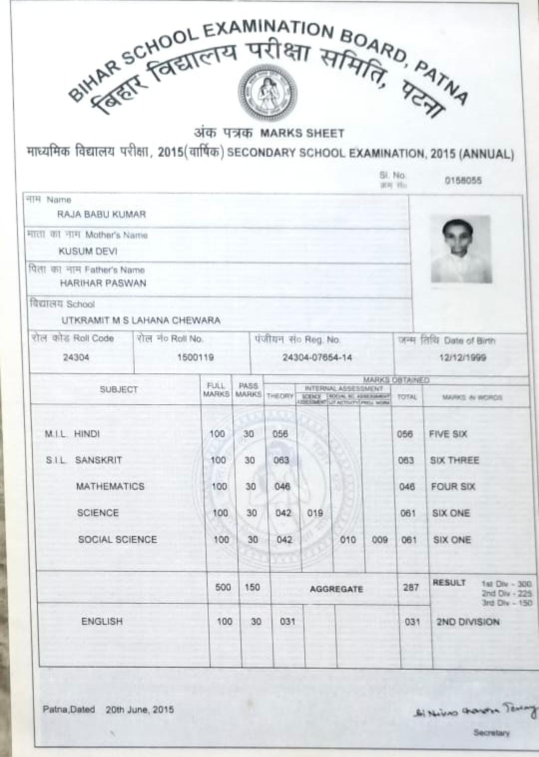 | Exam | Full Marks | Pass Marks | Marks Obtained |