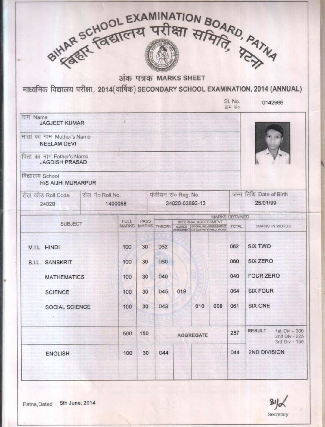 | Exam | Full Marks | Pass Marks | Marks Obtained |