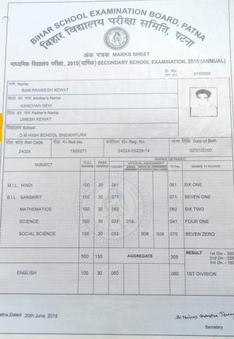 | Exam | Full Marks | Pass Marks | Marks Obtained |