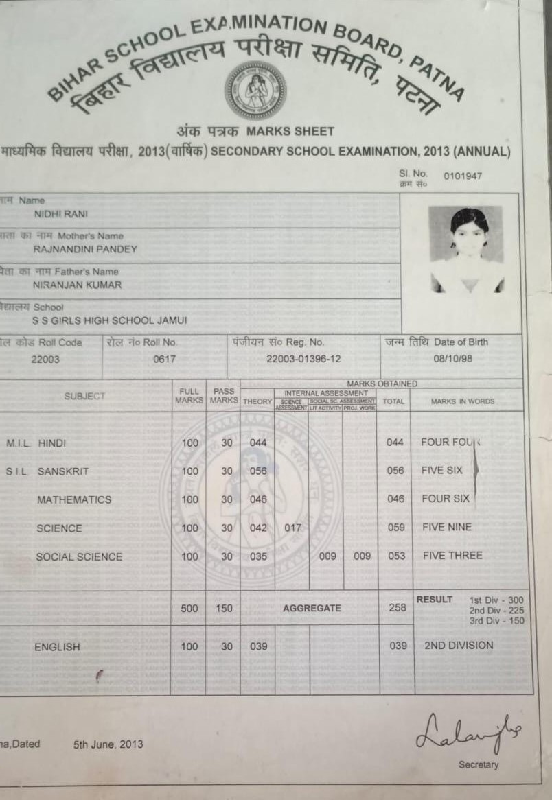 | Exam | Full Marks | Pass Marks | Marks Obtained |