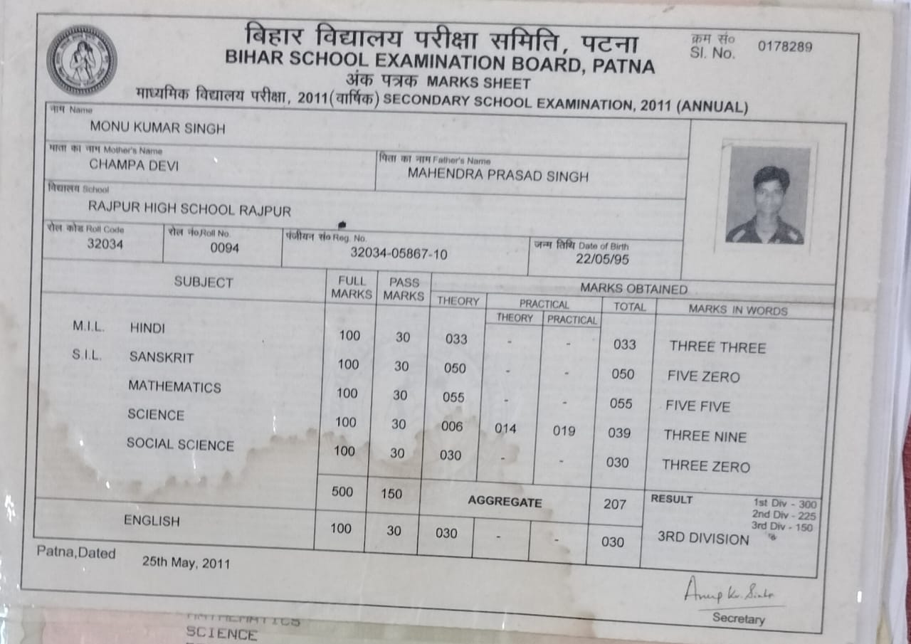 | Exam | Full Marks | Pass Marks | Marks Obtained |