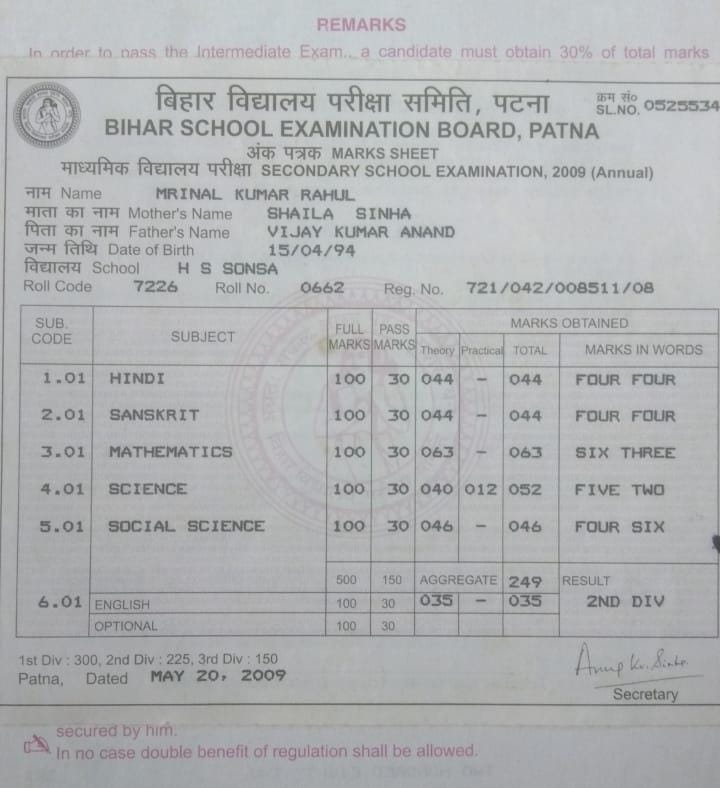 | Exam | Full Marks | Pass Marks | Marks Obtained |