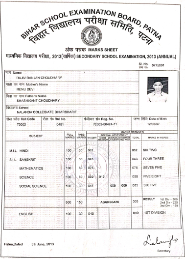 | Exam | Full Marks | Pass Marks | Marks Obtained |