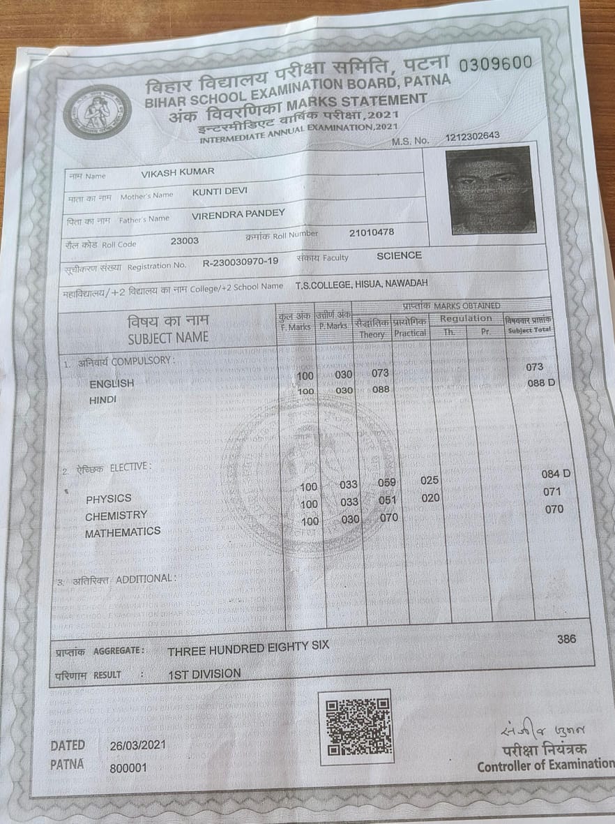 | Exam | Full Marks | Pass Marks | Marks Obtained |