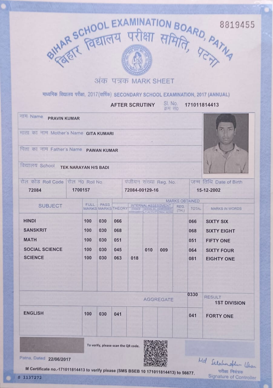 | : | Dekulighat, Khandakpar, BIHAR SHARIF-803101, Nalanda | |