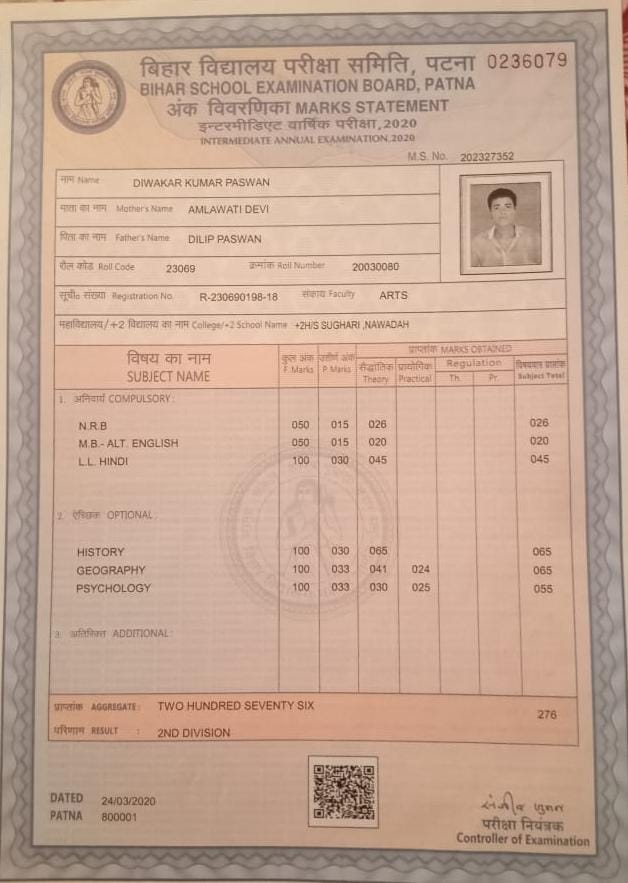 | Exam | Full Marks | Pass Marks | Marks Obtained |