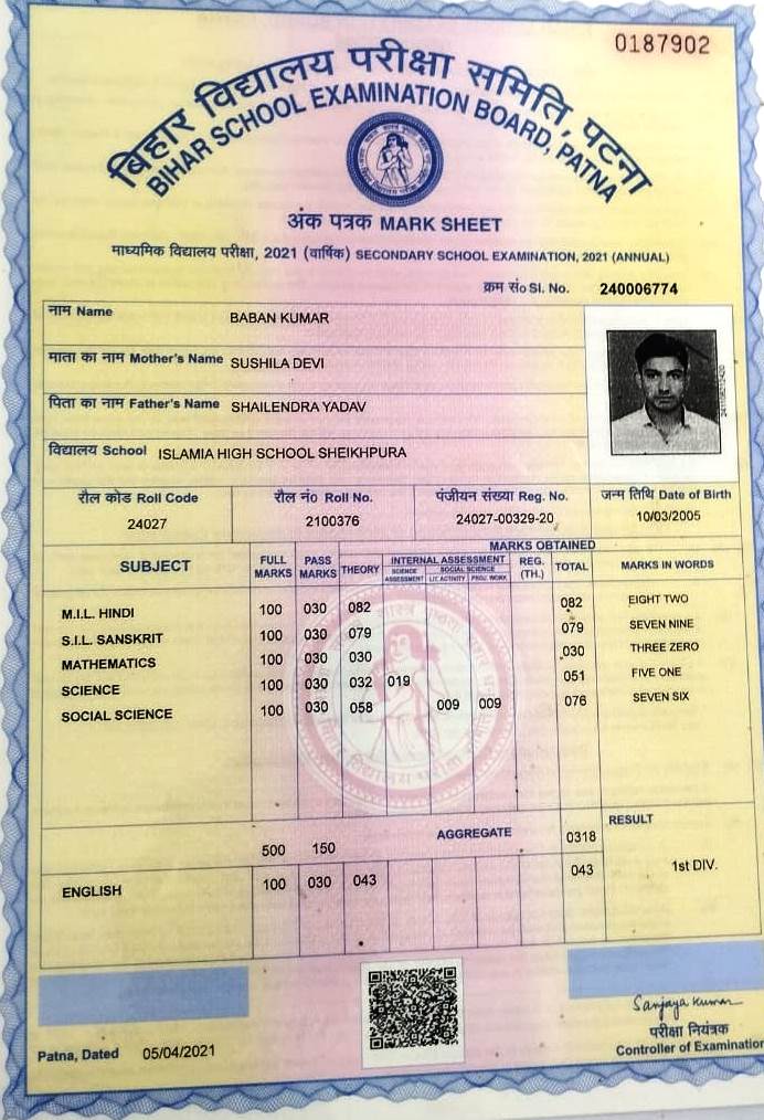 | Exam | Full Marks | Pass Marks | Marks Obtained |