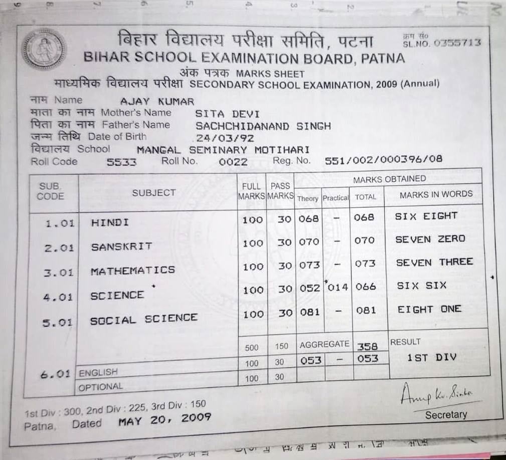 | Exam | Full Marks | Pass Marks | Marks Obtained |
