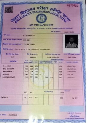 | Exam | Full Marks | Pass Marks | Marks Obtained |