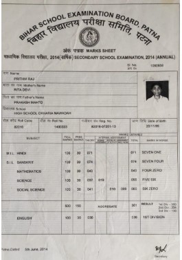 | Exam | Full Marks | Pass Marks | Marks Obtained |