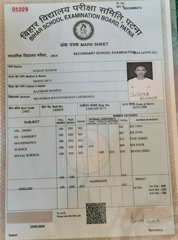 | Exam | Full Marks | Pass Marks | Marks Obtained |