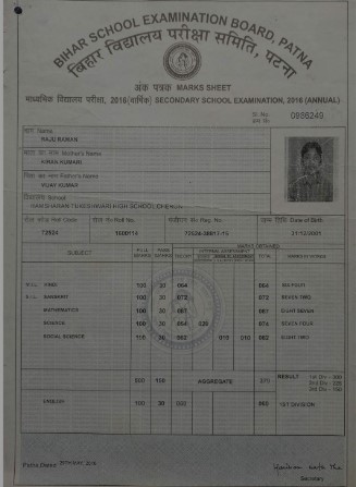 | Exam | Full Marks | Pass Marks | Marks Obtained |