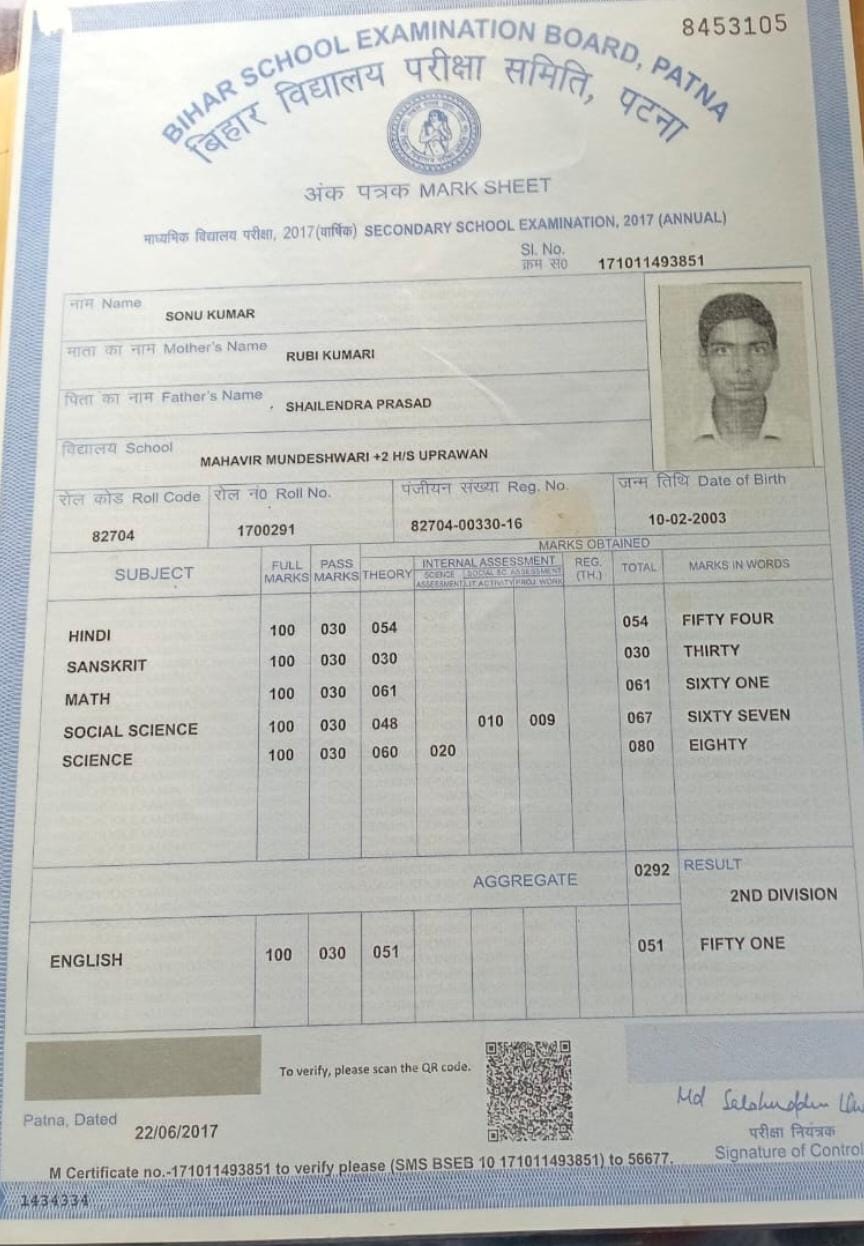 | Exam | Full Marks | Pass Marks | Marks Obtained |