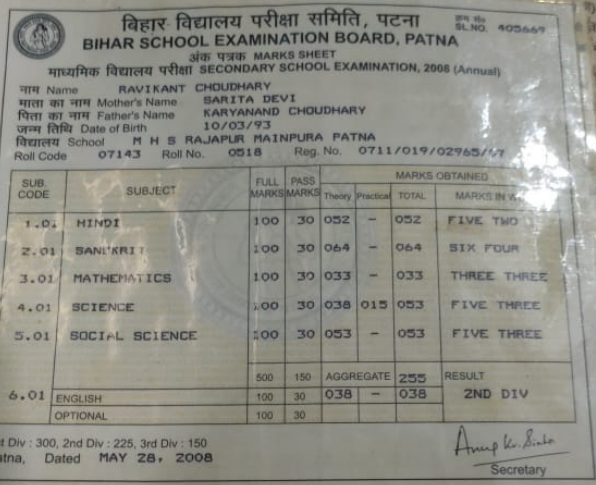 | Exam | Full Marks | Pass Marks | Marks Obtained |