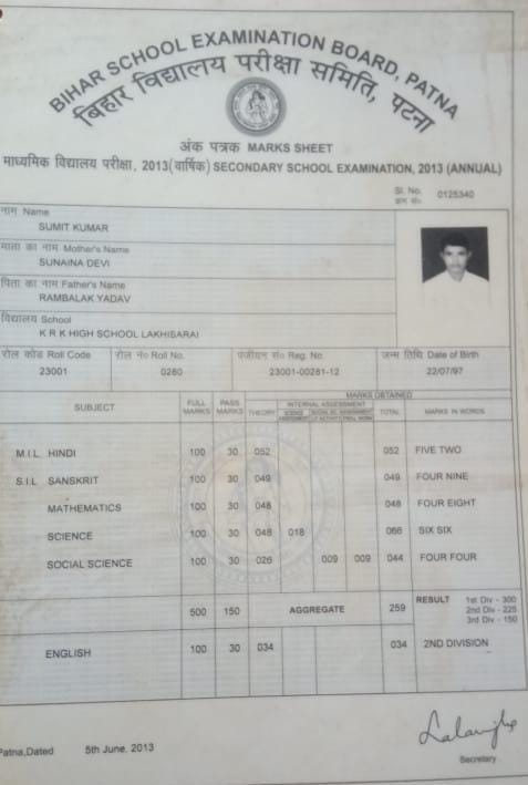 | Exam | Full Marks | Pass Marks | Marks Obtained |