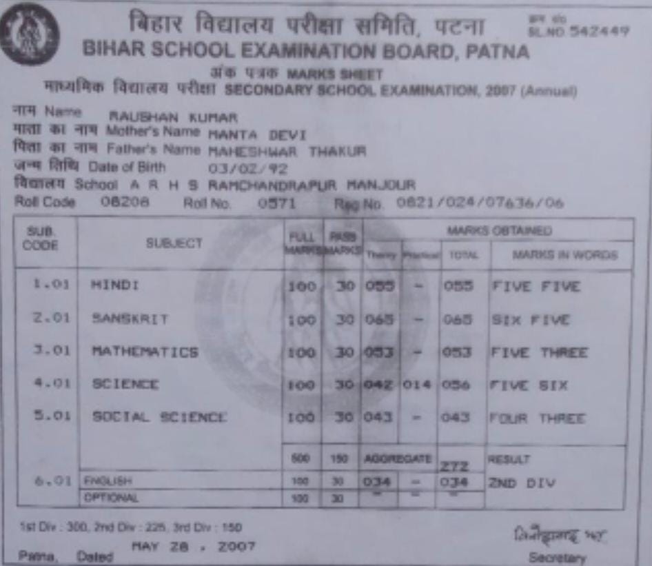| Exam | Full Marks | Pass Marks | Marks Obtained |