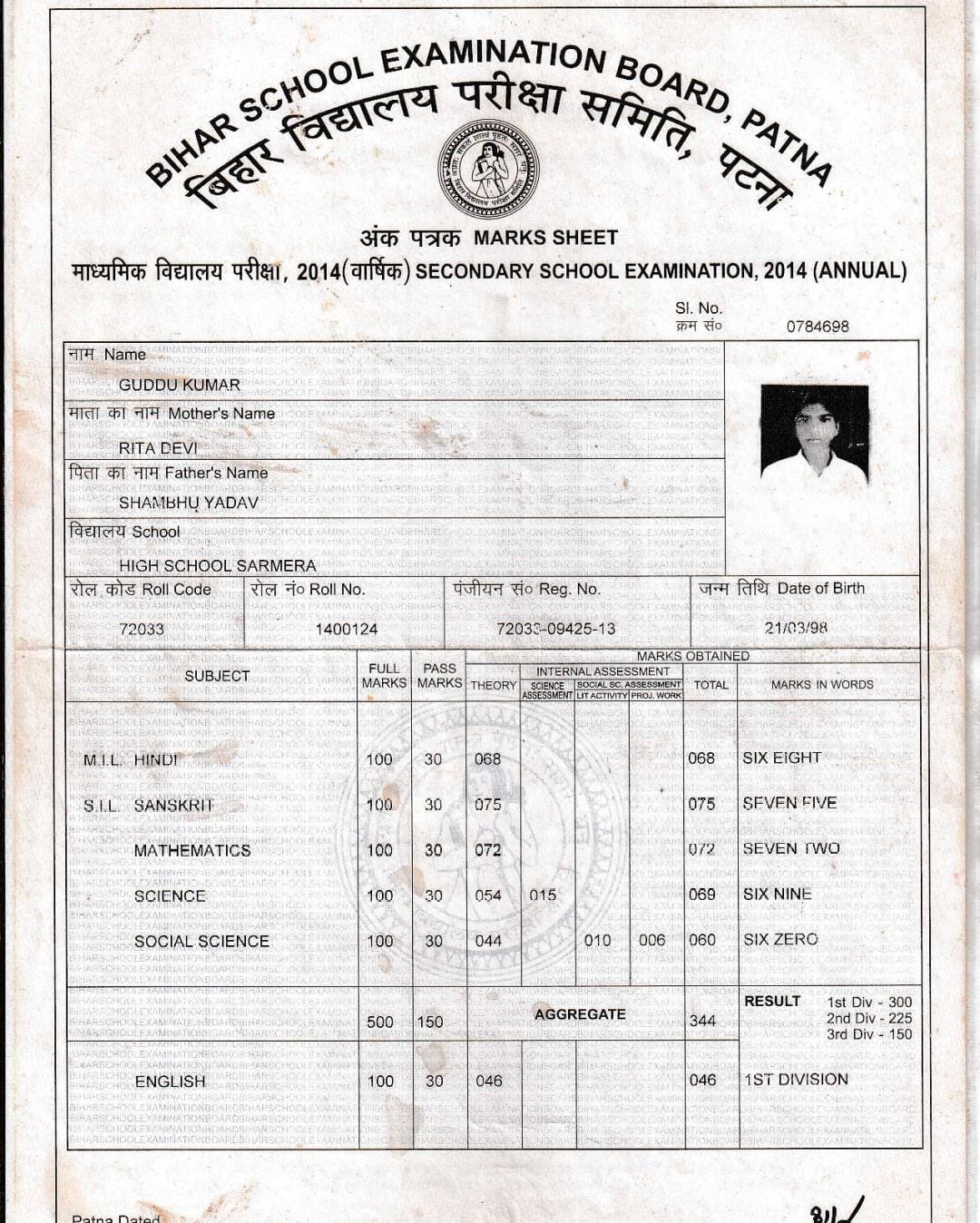 | Exam | Full Marks | Pass Marks | Marks Obtained |
