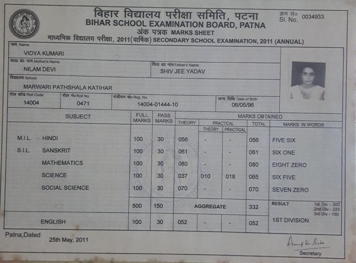 | Exam | Full Marks | Pass Marks | Marks Obtained |