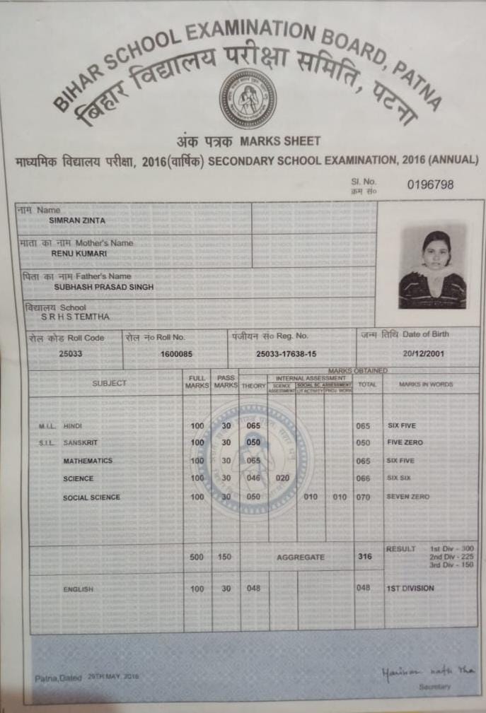 | Exam | Full Marks | Pass Marks | Marks Obtained |