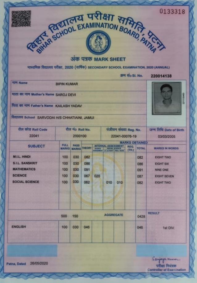 | Exam | Full Marks | Pass Marks | Marks Obtained |