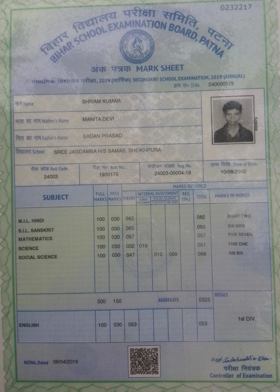 | Exam | Full Marks | Pass Marks | Marks Obtained |