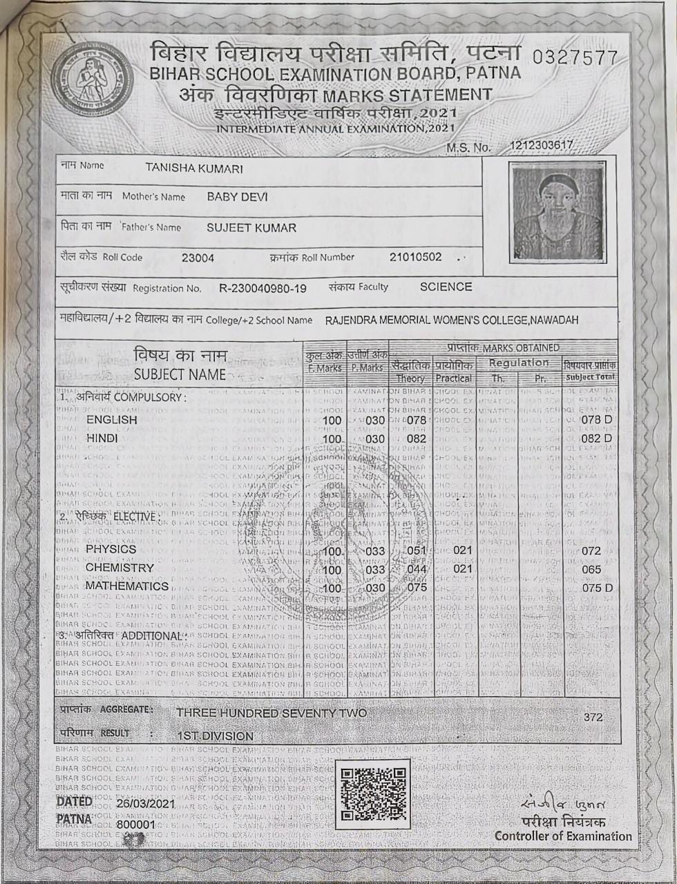 | Exam | Full Marks | Pass Marks | Marks Obtained |